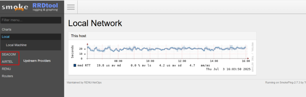 Monitoring provider-level paths with SmokePing ensures your organization is not flying blind when it comes to upstream performance. By actively comparing multiple paths, you gain data-driven insight into latency, packet loss, and failover readiness. Whether you’re balancing between providers or holding one accountable, SmokePing offers a clear window into the otherwise invisible.